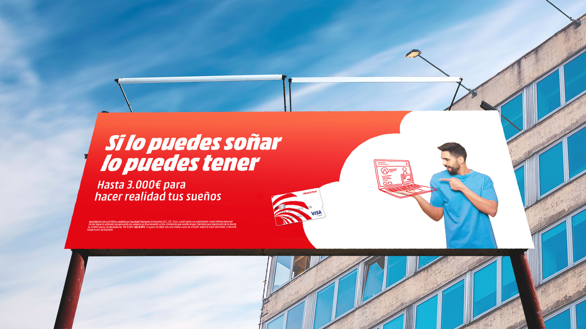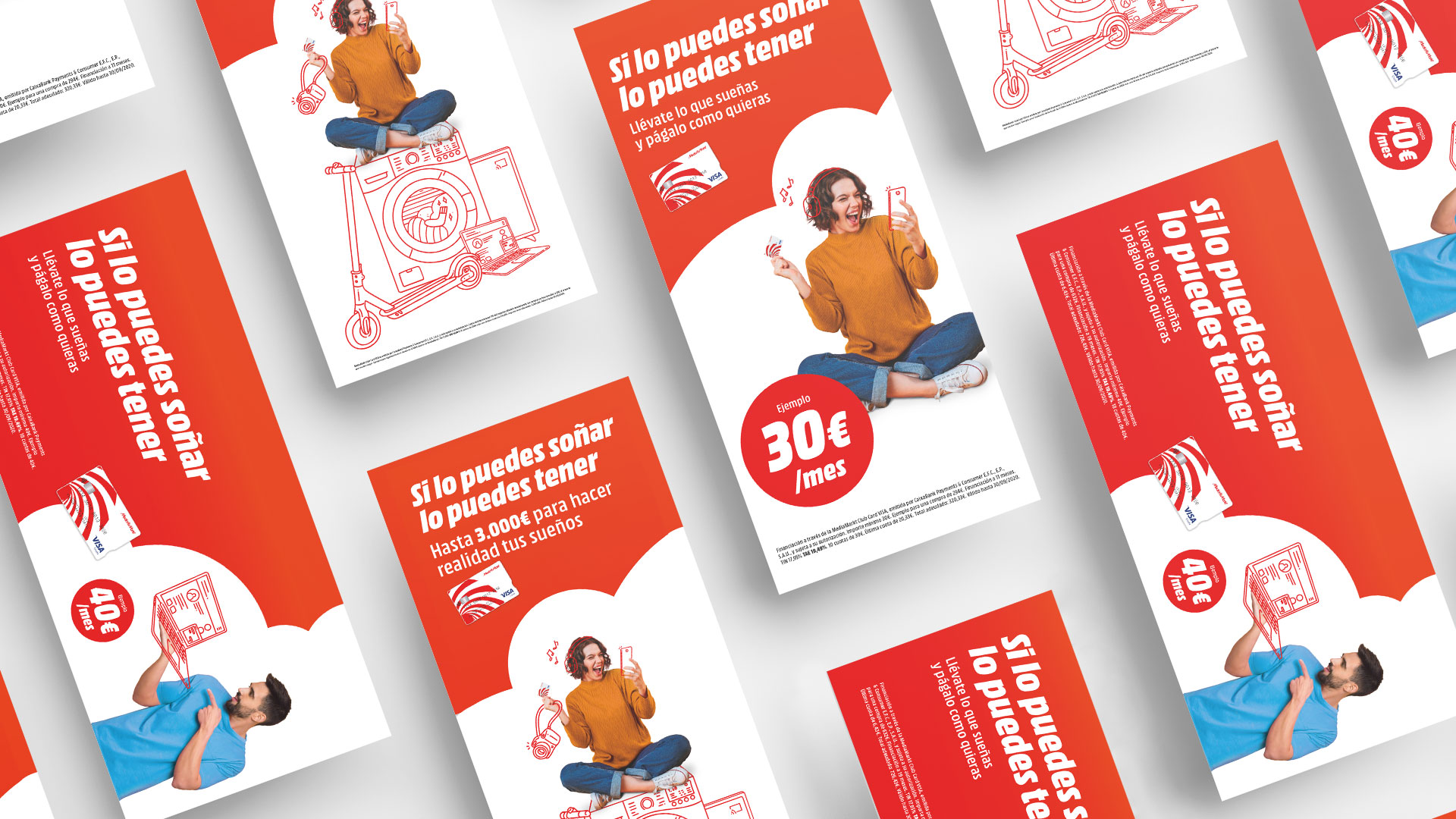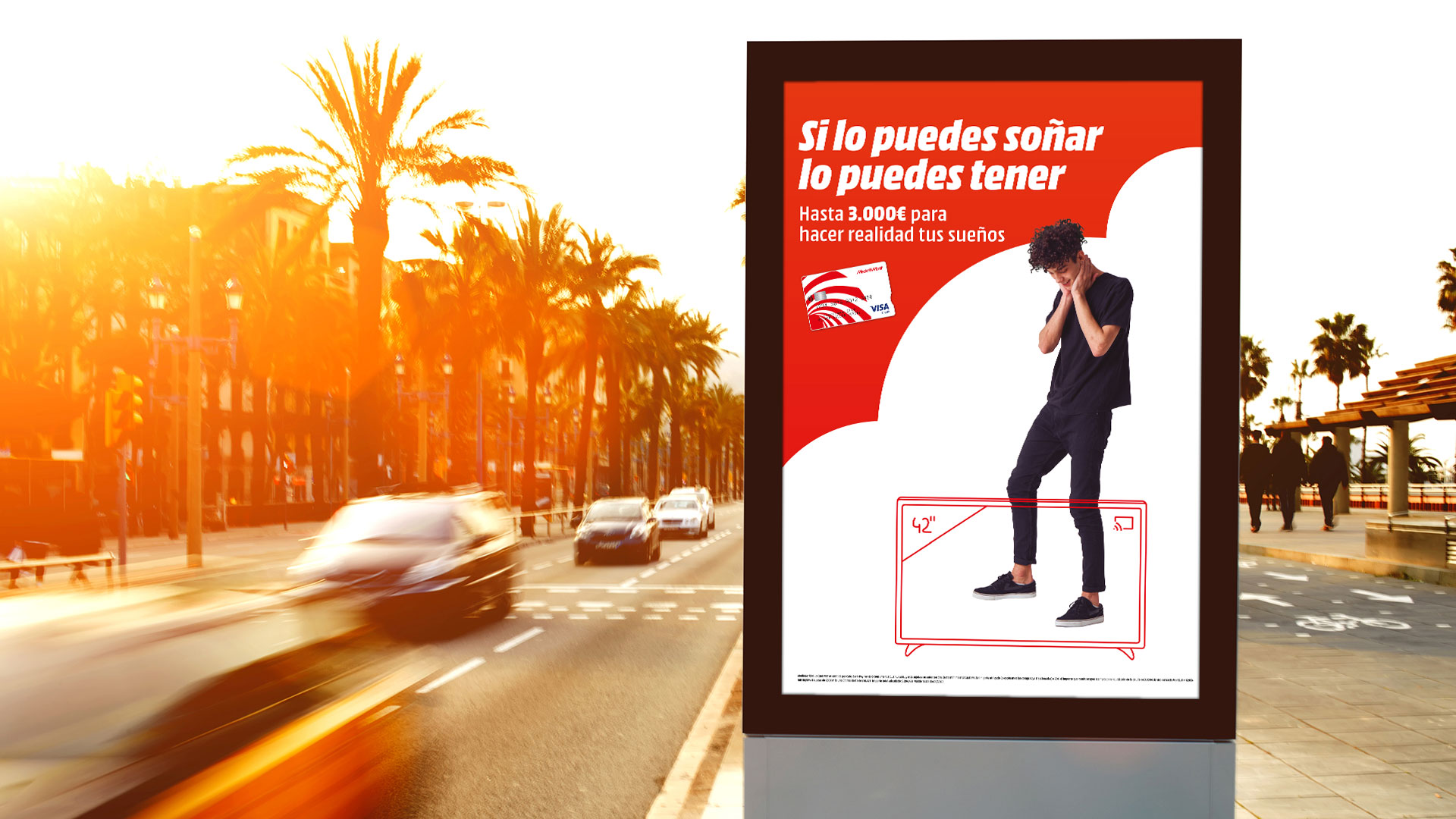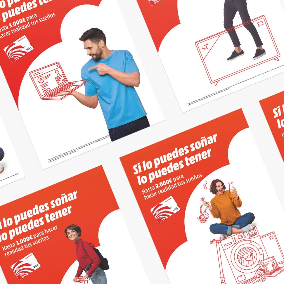 Para MediaMarkt llevamos a cabo el diseño de toda la publicidad para su campaña gráfica de financiación. Nos encargamos de realizar la estrategia, la conceptualización y la creatividad; desarrollando finalmente todas las aplicaciones, manteniendo la esencia de la marca y aportando un toque creativo combinando fotografía con ilustraciones para evocar aquello que quieres pero aún no tienes, además se consigue generar productos atemporales y adaptables.