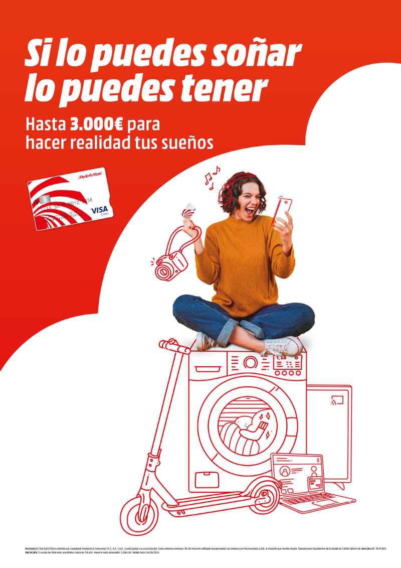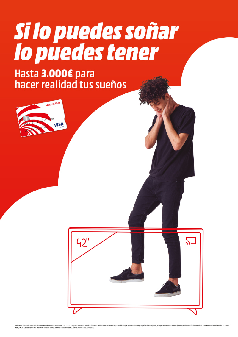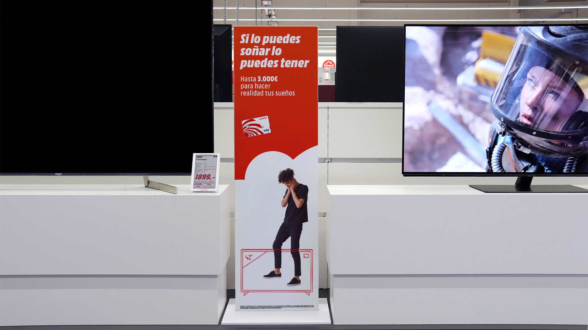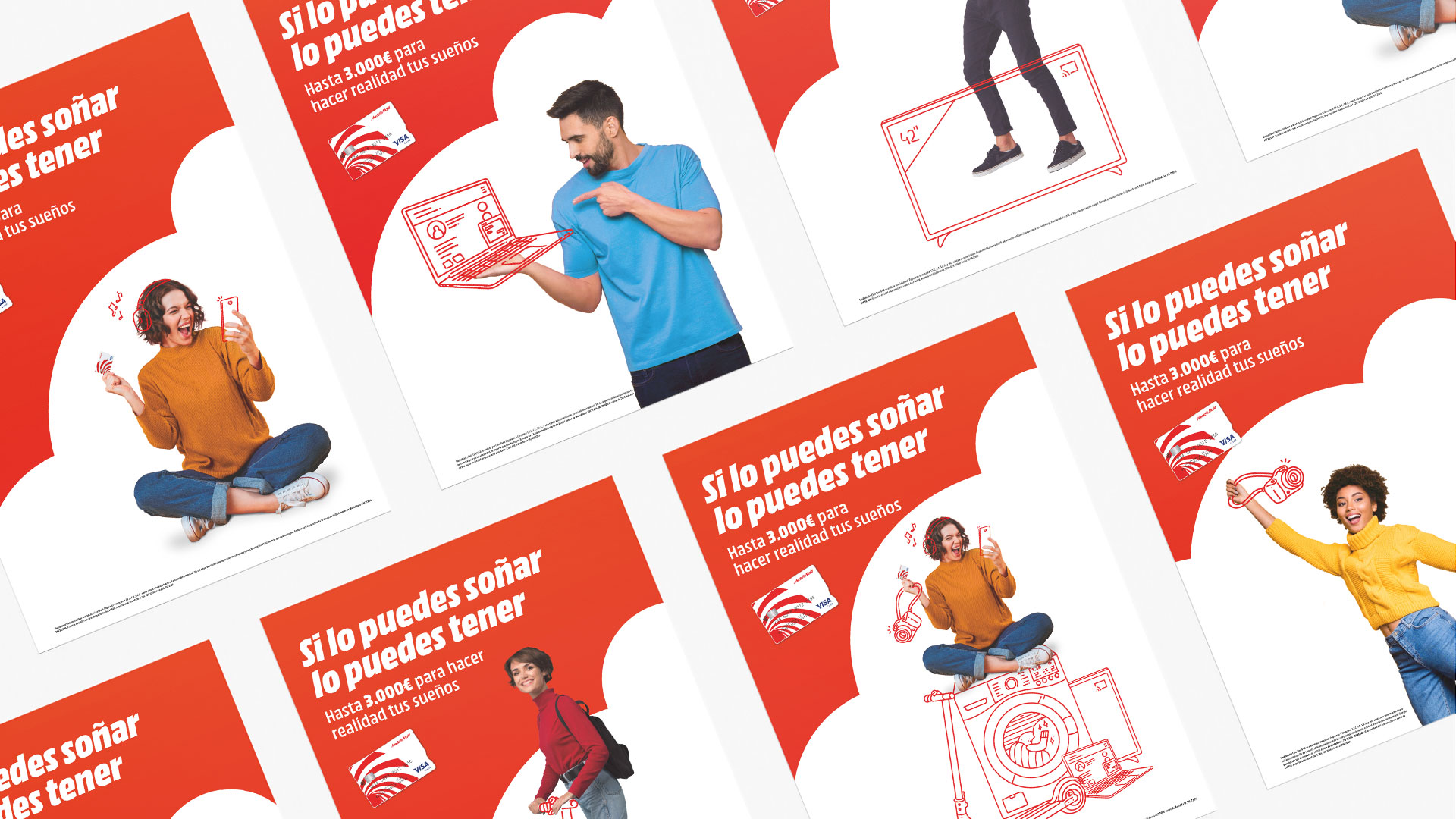 Para MediaMarkt llevamos a cabo el diseño de toda la publicidad para su campaña gráfica de financiación. Nos encargamos de realizar la estrategia, la conceptualización y la creatividad; desarrollando finalmente todas las aplicaciones, manteniendo la esencia de la marca y aportando un toque creativo combinando fotografía con ilustraciones para evocar aquello que quieres pero aún no tienes, además se consigue generar productos atemporales y adaptables.